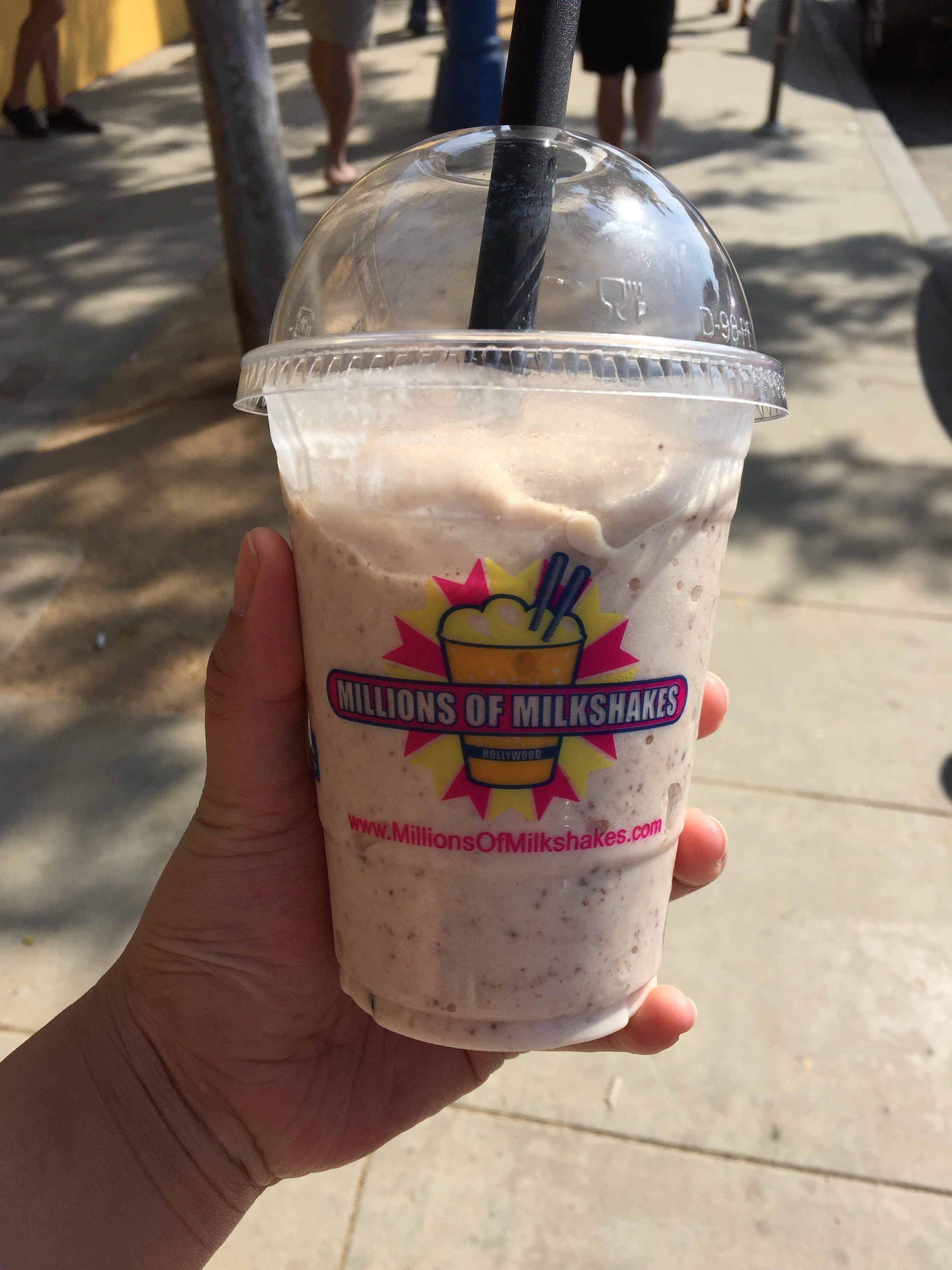By 3PM the sun has decided to come out. The fishy beach smell always makes me crave milkshakes. Since we didn’t get one at the Pier, we drove our posh, sweaty selves to Millions of Milkshakes in Beverly Hills. I had the Ferrero Rocher and Banana Mix. Delicious.