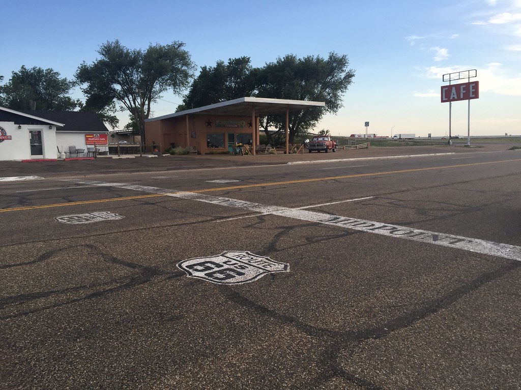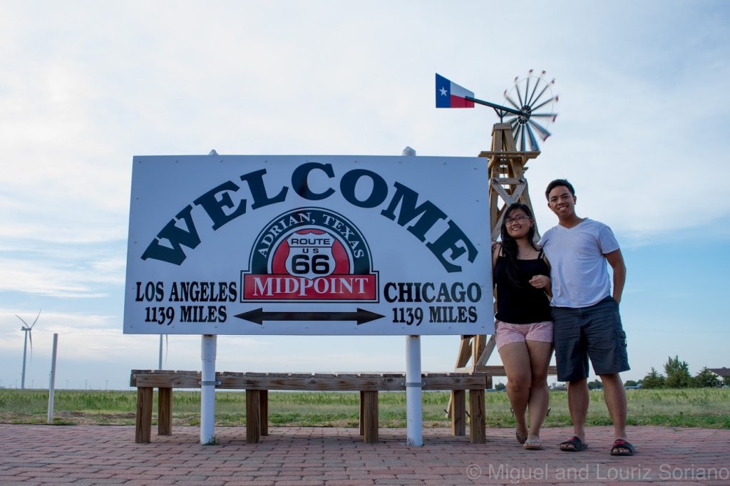 If we were traveling on Route 66 all the way, going from Los Angeles to Chicago, this spot in Adrian, Texas would’ve been our halfway point. Hooray!