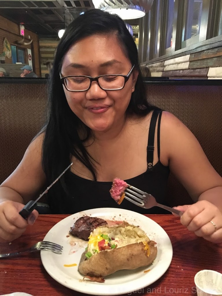 As Miguel’s reward for driving all 8 hours, we had steak dinner at Hoffbrau’s. Of course, I had to reward myself as well, for being a good passenger ๐ If you’re vegan, please turn away now.